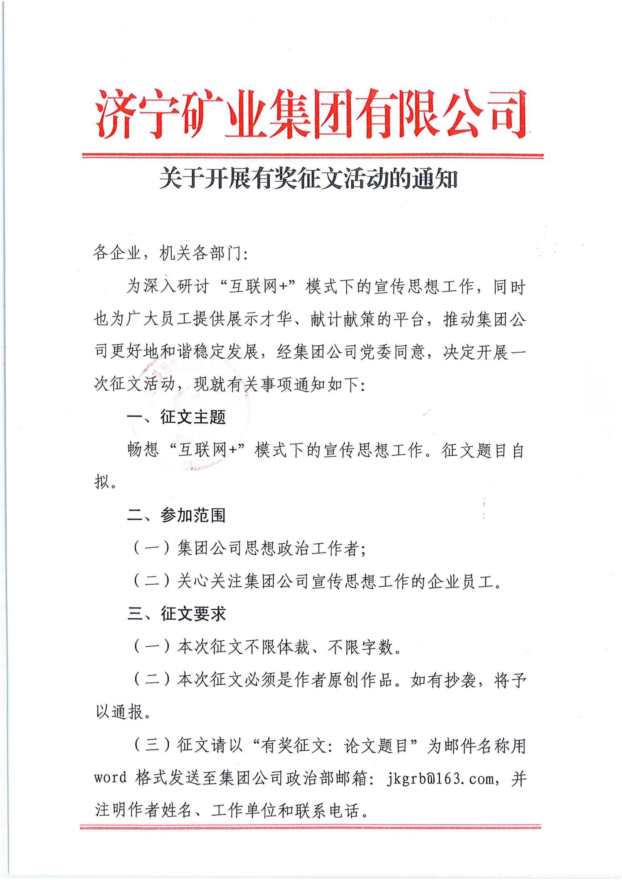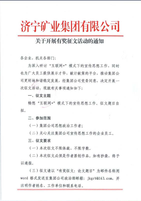 济宁矿业集团有奖征文
