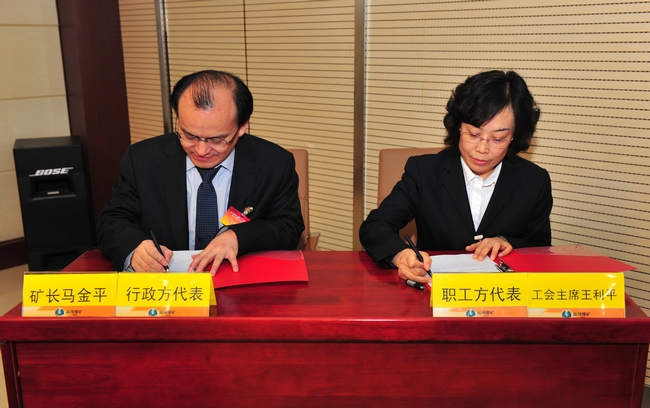 闭幕式会议由大会主席团执行主席、工会主席王利平主持。矿长马金平代表行政方、工会主席王利平代表职工方签订《集体合同》、《劳动安全卫生专项集体合同》、《工资集体协商专项合同》和《女职工特殊权益保护专项劳动合同》。大会主席团执行主席、副矿长刘克东对职工提案进行了现场解答。会议表决通过了三项会议决议;职工代表、2012年度劳动模范、综采一区区长张洪猛宣读了大会倡议书。