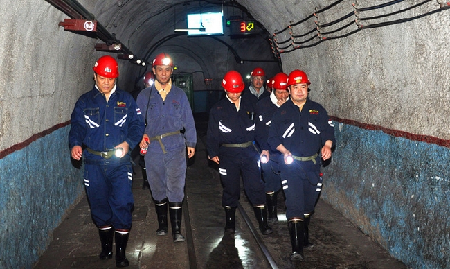 9:10,张总经理深入该矿2306综放工作面生产现场检查,在采煤工作面上端头,与干部职工进行了亲切的交流。对工区自行设计研制的防跑车装置给予了肯定。在2306下顺槽皮带漏煤眼处,现场管理人员向集团公司领导介绍了矿上自行设计、改装使用的煤矸分运装置,该装置对提高采煤效率和提高煤质起到了重要的作用,通过演示使用,张总经理对矿上的小改小革给予了很高的评价。升井后,又与班子成员进行了座谈。