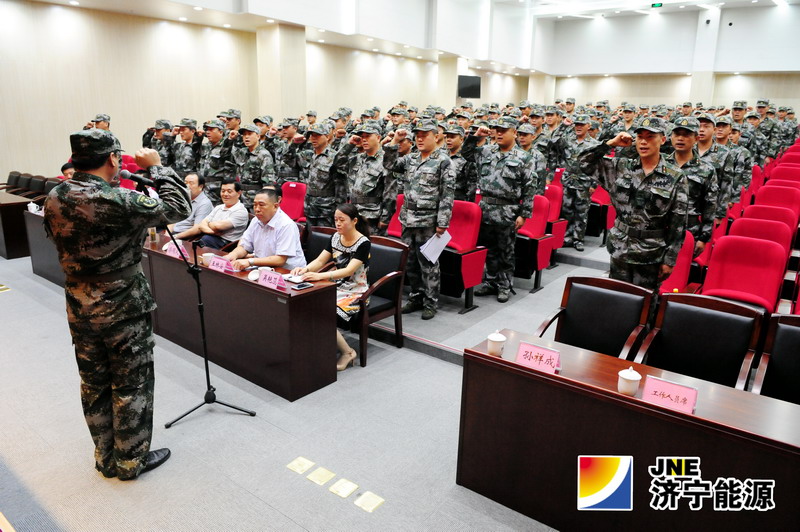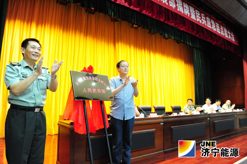 会上,虢洪增宣读了济宁军分区关于设立集团公司武装部的批复、济宁市中区武装部任职命令以及集团公司党委相关文件。王波、韩晓东共同为集团公司武装部揭牌,济宁军分区参谋徐金书对集团公司民兵应急连进行了点验,民兵连长李大路带领全体民兵连战士进行了宣誓。
