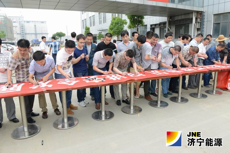 签字仪式隆重而简短,殷然等领导班子成员带头在印有“强化红线意识,促进安全发展”的条幅上签字,600多名职工也庄重地写下自己的名字。
