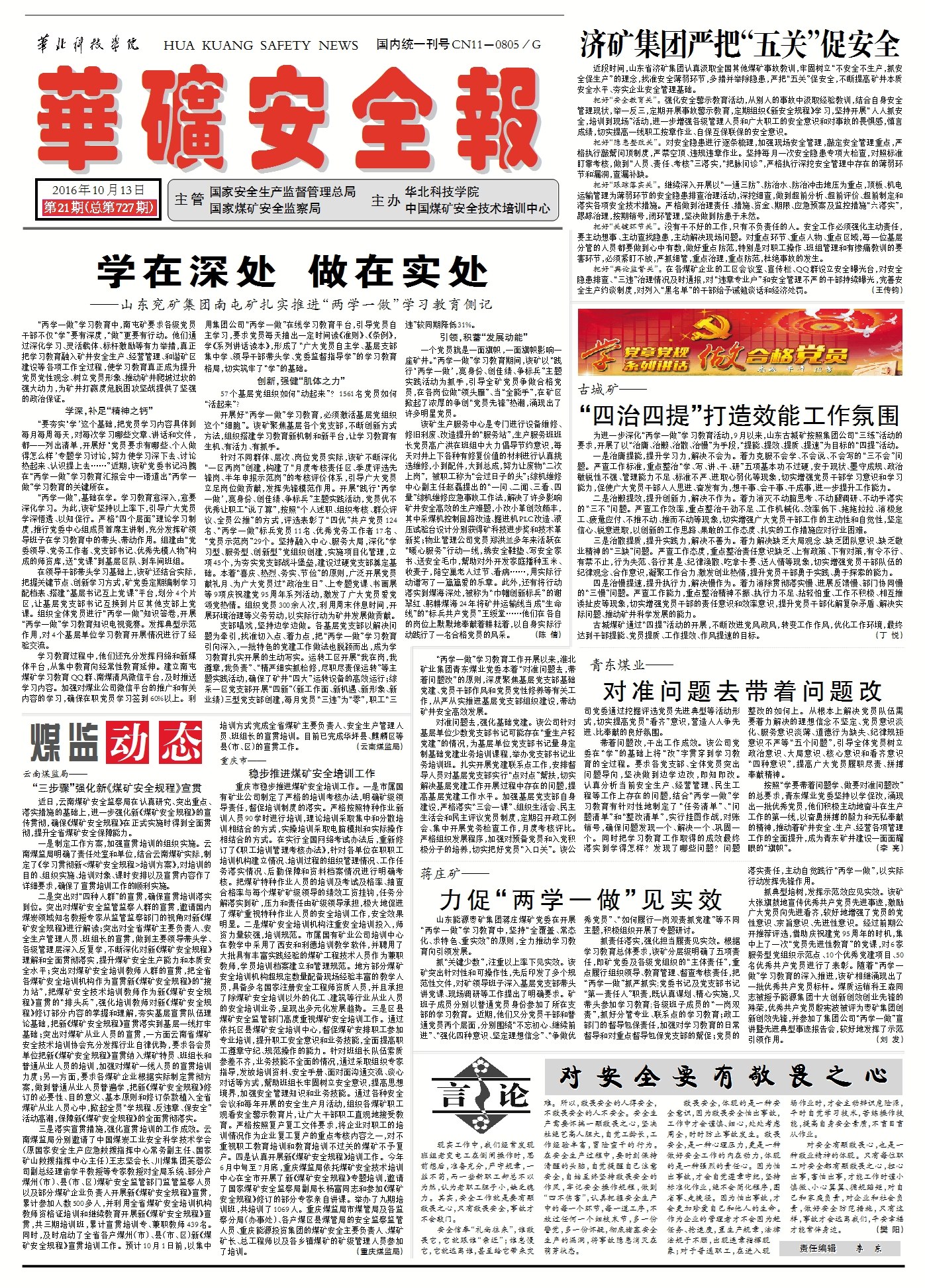 《华矿安全报》2016年10月13日头版: